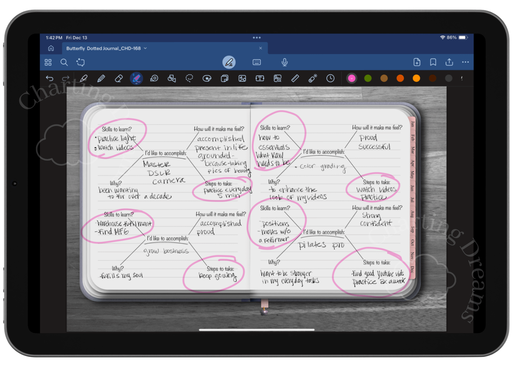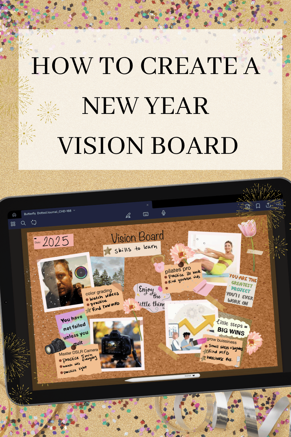 Now that we have our goals and actions steps it’s time to create our Vision Board. I now create my Vision Boards on my digital planner as doing it physically often overwhelmed me because, I’d think of all the clean up. So now with digital planners I can create the Vision Board I want but with less time and clean up.